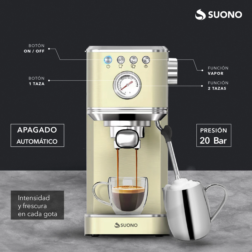 CAFETERA ESPRESSO SUONO 20 BAR C/CAPSULAS CREMA HOG0203CRE (R)
